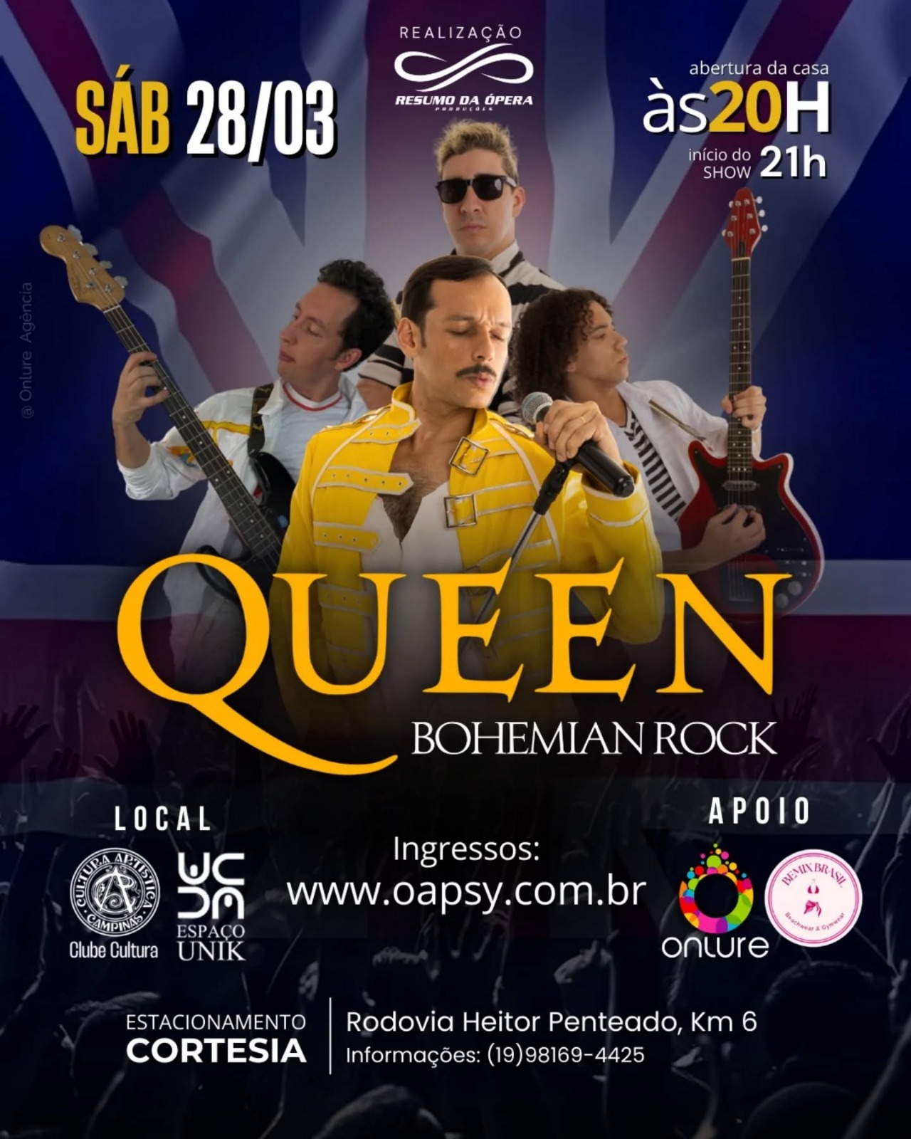 O Clube Cultura será palco de uma noite especial para os fãs de rock no dia 28 de março (sábado). O Espaço Unik recebe o
