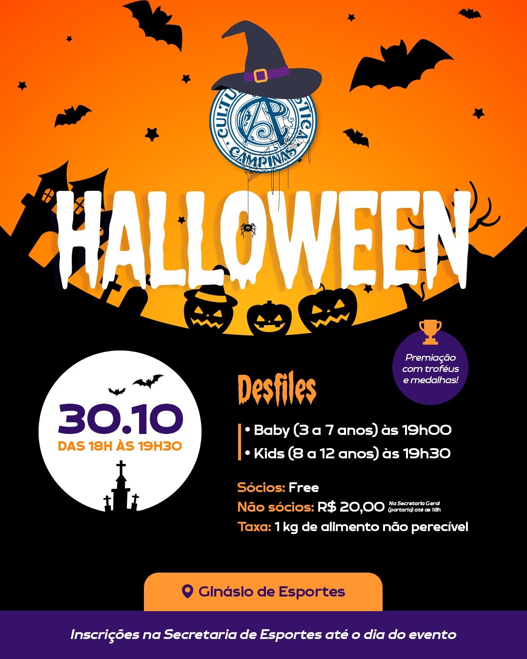 Halloween do Cultura tem diversão e fantasia no Ginásio de Esportes 23/10/2025 Nenhum comentário O Clube Cultura entra no clima do Halloween e convida os associados para uma noite de pura diversão na quarta-feira, 30 de outubro, das 18h